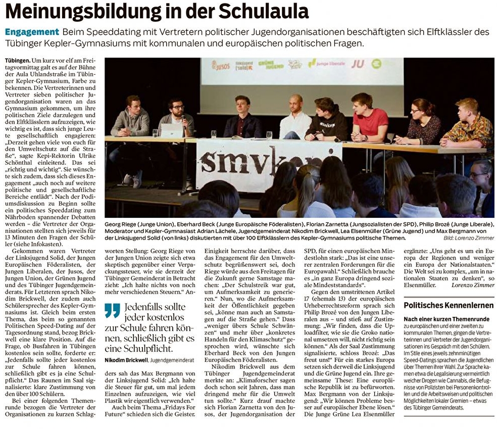Das ist unser Ziel: Wir wollen das Bewusstsein junger Leute für Politik in all ihren Formen und auf all ihren Ebenen- beginnend im Landkreis Tübingen- schärfen. Dabei geht es darum um die Aufgabe, das Verständnis der jungen Generation für politische Prozesse zu erhöhen und ihr die Gestaltungs- und Einwirkungsmöglichkeiten aufzuzeigen, ohne dabei eine politische Richtung vorzugeben. Wir streiten für die aktive Partizipation, für das Engagement und die Mitarbeit junger Menschen in Politik und Gesellschaft.